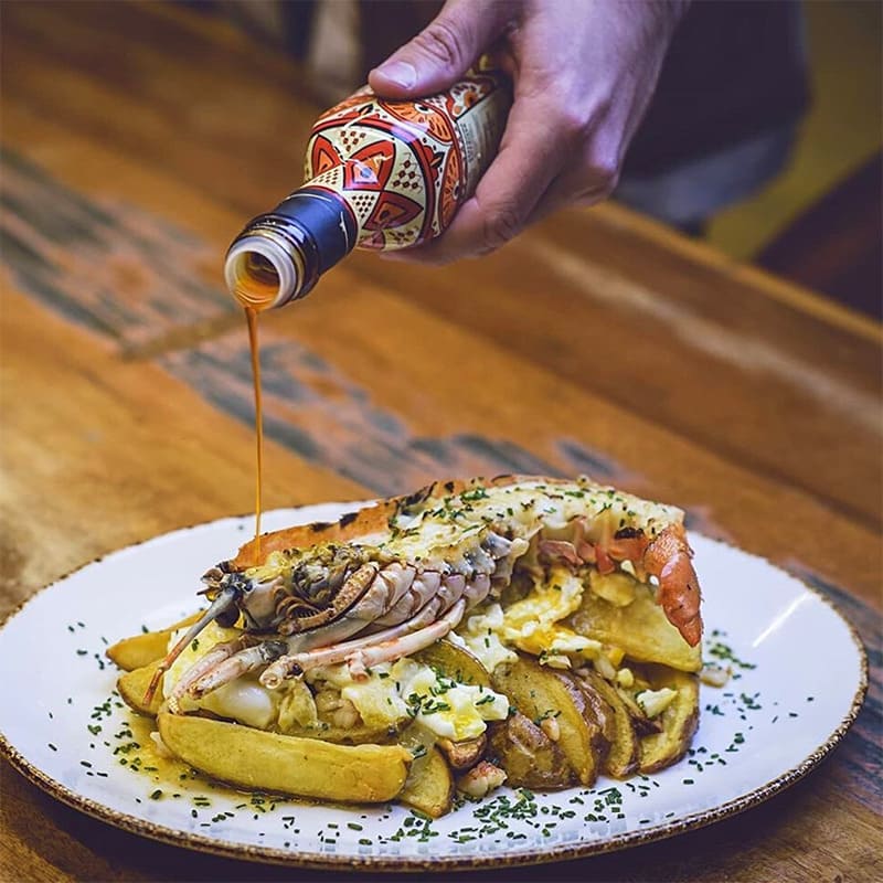 De este modo, presenta en primer plano los aromas tostados y pungentes de la cayena, seguidos por las otras especias, donde se identifican perfectamente en el retrogusto cada una de ellas: ajo, cilantro y alcaravea. A esto, se le suma una combinación ponderada e intensificada con los aromas frutales y verdes del zumo de la aceituna arbequina fresca.