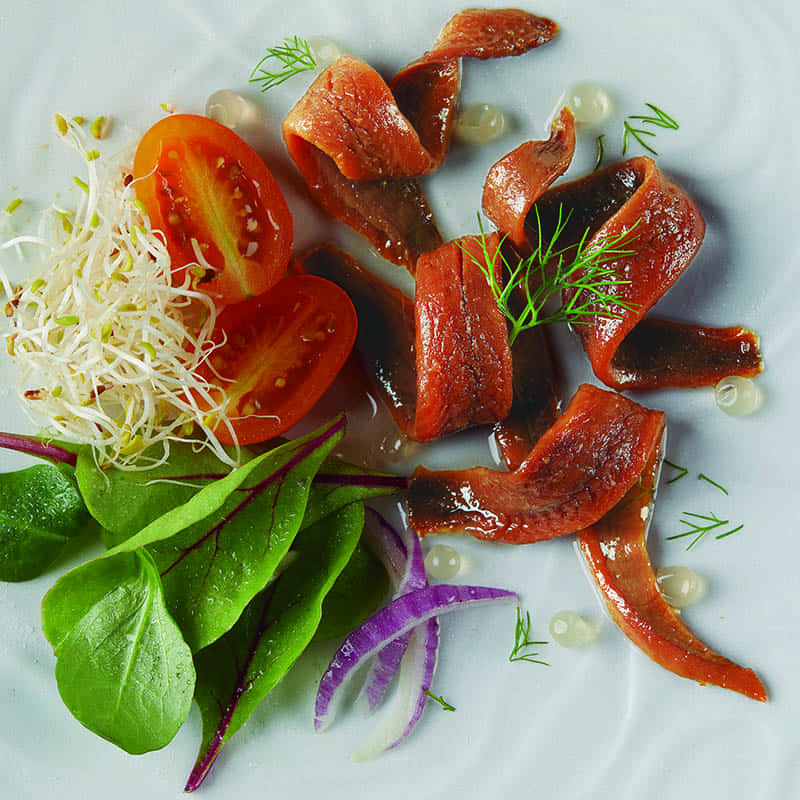 Sus anchoas del Cantábrico pertenecen a la especie Engraulis Encrasicolus, capturadas en los caladeros del Mar Cantábrico durante la costera de primavera. Son las más sabrosas y cotizadas del mercado.
