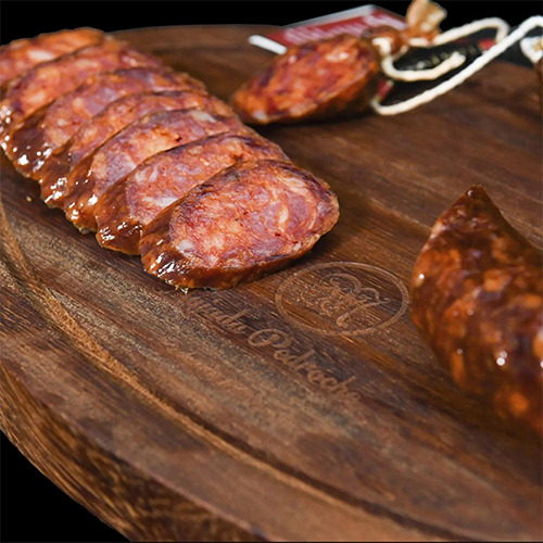 Producto elaborado con la selección de los mejores magros de cerdo de bellota 100% ibérico, es un chorizo ibérico con un sabor único y característico del “Valle de Los Pedroches”, conservando los mismos aliños y procesos de elaboración artesanales, siguiendo las recetas tradiconales.
