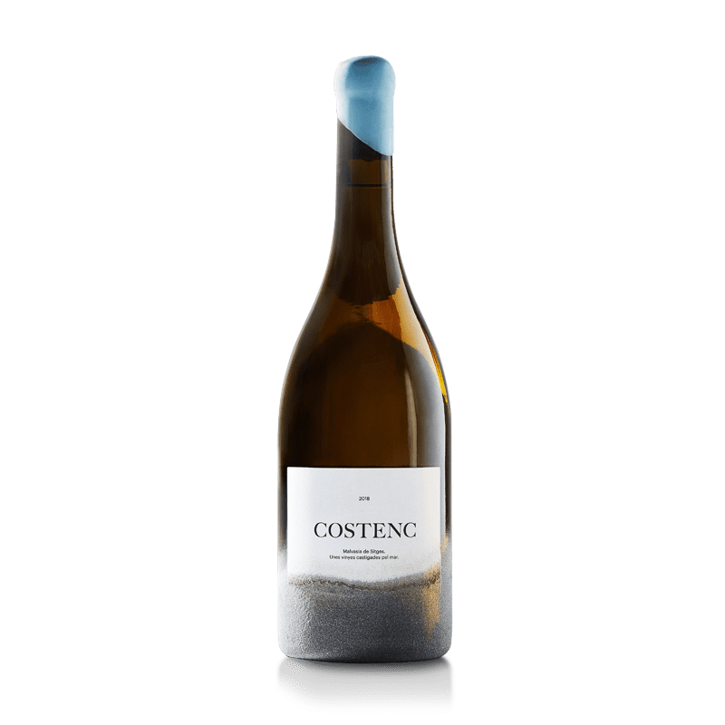 Como salido del mar, su vino ‘costero’ Costenc conquista por dentro y por fuera… Está elaborado con uvas ‘castigadas por el mar’ de la olvidada variedad Malvasía de Sitges, cuya esencia se refleja en la propia botella, que parece tener medio cuerpo dañado por el salitre como si de una boya se tratase. Es un vino de carácter, fresco, con complejidad aromática en frutas maduras y notas florales del que solo se hacen 3.400 botellas numeradas. La erosión marina de los viñedos marca su sabor y se refleja en un envase que habla por sí solo.
