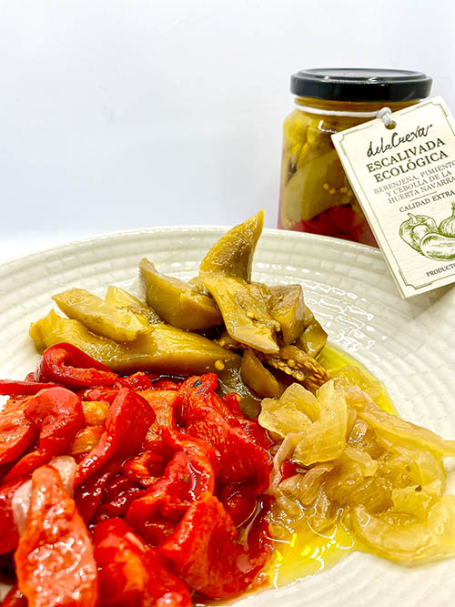 Ingredientes: pimiento morrón asado, berenjena, cebolla, aceite de oliva, sal y acidulante (ácido cítrico). Todo procedente de agricultura ecológica.