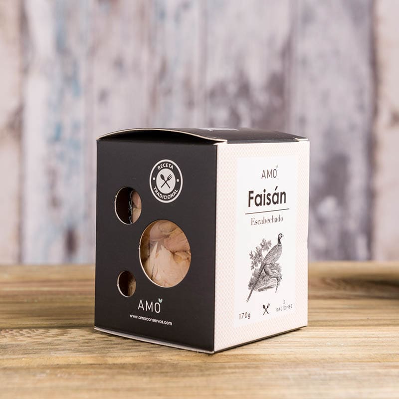 El faisán escabechado de Amo Conservas es otro de los productos gourmet destacados de esta marca, conocida por sus conservas finas. El faisán es una carne de caza muy apreciada por su sabor delicado y su textura firme. En el caso de la conserva, el faisán se prepara en un escabeche que suele consistir en una mezcla de vinagre, aceite, especias y hierbas aromáticas, que actúan como conservantes naturales y aportan un sabor único.