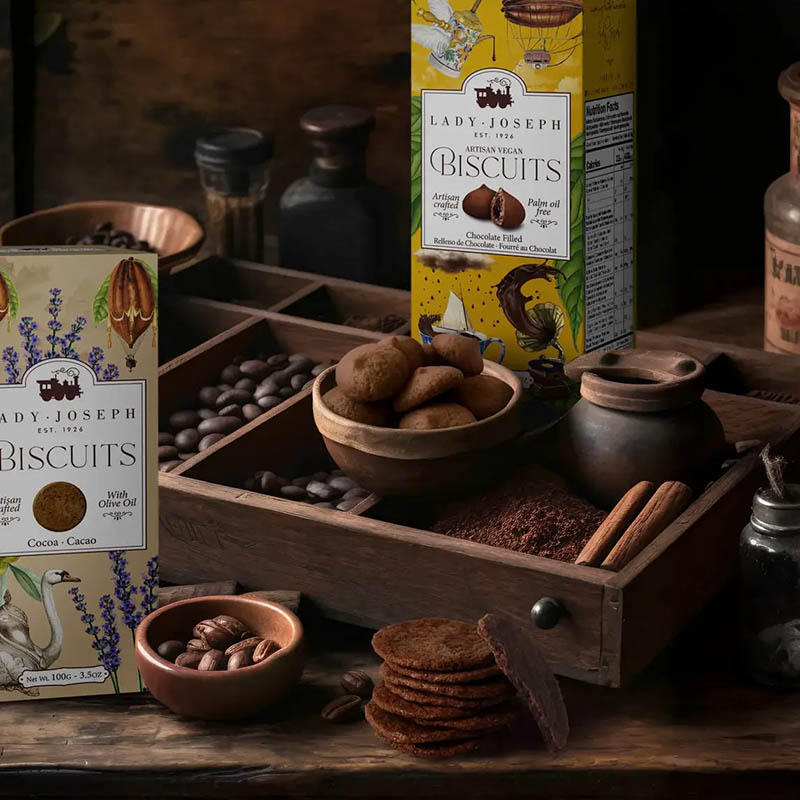 Lady Joseph, apasionada del cacao auténtico, dedicó años a buscar un ingrediente que capturara toda la intensidad, el aroma y la riqueza del mejor cacao natural. El resultado son estas galletas extrafinas y crujientes, elaboradas de manera artesanal con aceite de oliva virgen extra y un cacao de calidad superior, que aportan un sabor profundo, elegante y duradero.