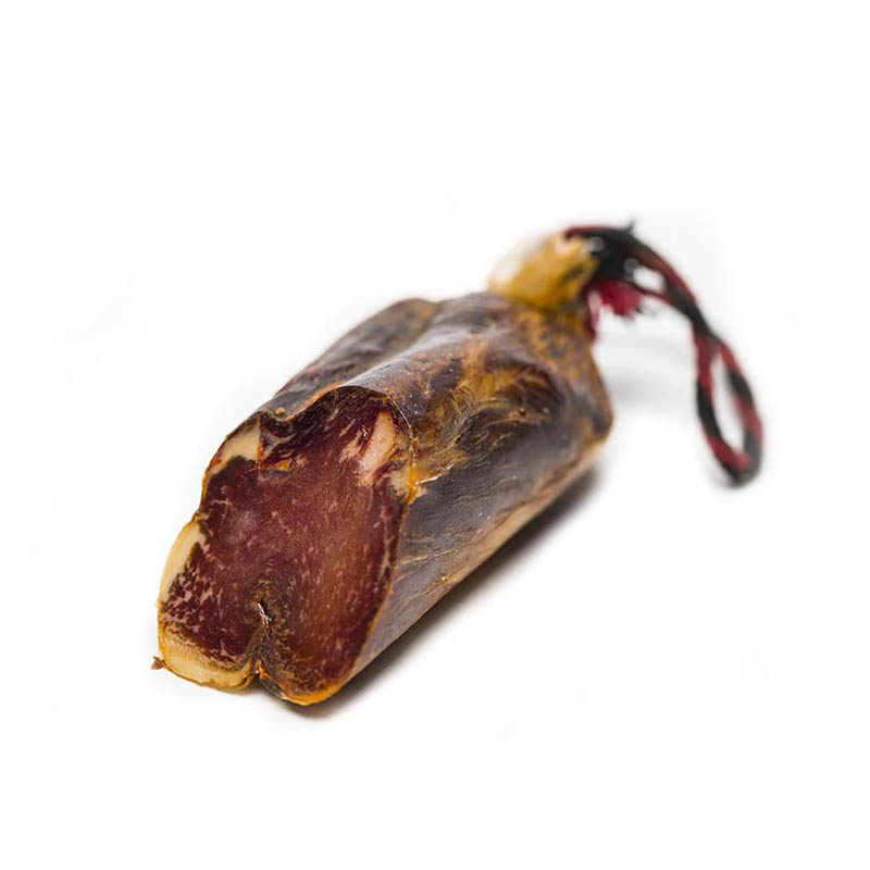 Una de las joyas de los ibéricos españoles. Tiene una curación de un mínimo de 6 meses, excelente con una cova de cava para maridarlo.