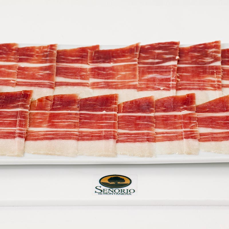 Paleta 100% ibérico ecológico, loncheado Señorío de MontaneraFormato exclusivo de degustación de la paleta de bellota 100% ibérica, envasado en atmósfera protectora para disfrutar de todo el sabor del ibérico puro como recién cortado.
