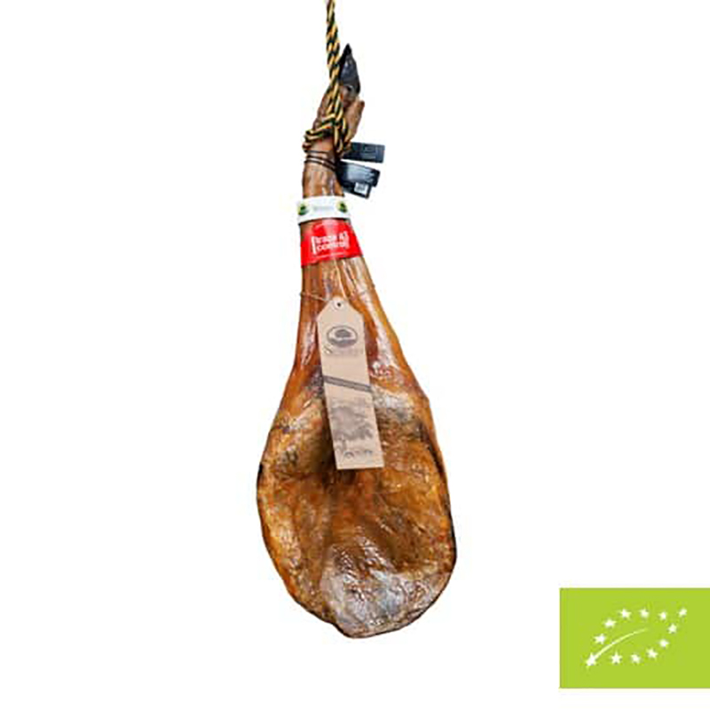 Los cerdos 100% ibéricos ecológicos se crían en dehesas certificadas como explotaciones ecológicas, donde se alimentan con piensos naturales y ecológicos antes de su entrada en montanera, cuando ya solo consumirán bellotas y recursos naturales de la dehesa. Su elaboración es 100% natural, sin aditivos ni conservantes artificiales; lo que conlleva un cuidado mucho más exhaustivo y artesanal que los ibéricos tradicionales. Un largo envejecimiento en bodegas naturales excavadas en roca, consigue una curación lenta y pausada; afinando los matices de su aroma y sabor.