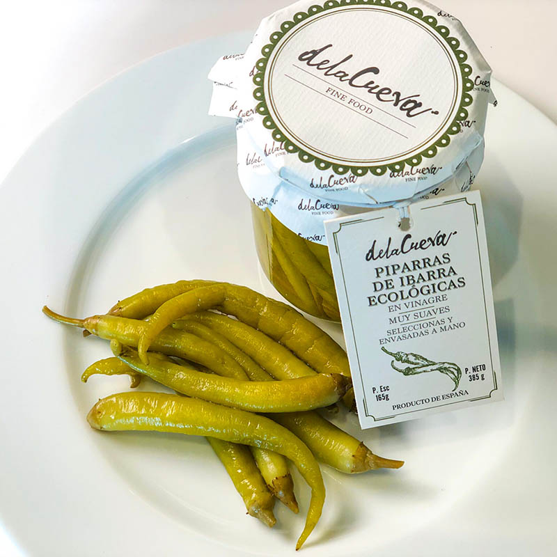 Seleccionadas y envasadas a mano, en la población guipuzcoana de Ibarra, se carácterizan por su piel fina y su sabor suave, ya que apenas pican, debido a que se recogen en verde a finales de agosto.