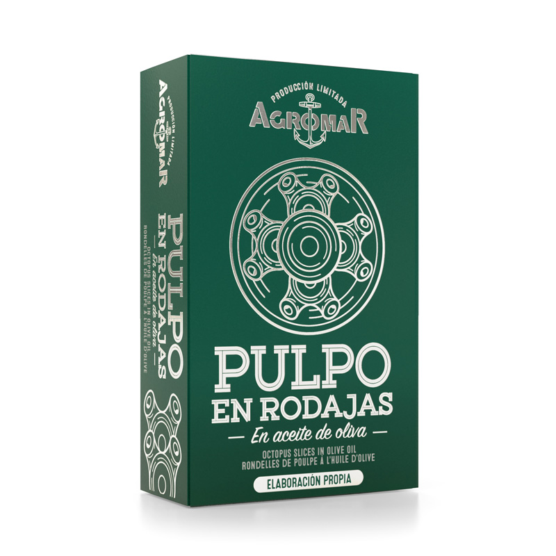 Una de las conservas más representativas del Cantábrico. El Pulpo en aceite de oliva ya cocido. Se elabora con tentáculos cortados a mano y aceite de gran calidad. Es ideal para abrir, añadir pimentón y tener el aperitivo listo para disfrutarlo en compañía. Agromar selecciona pulpos de gran calidad para ofreceros los tesoros que sólo nuestro mar Cantábrico es capaz de darnos.