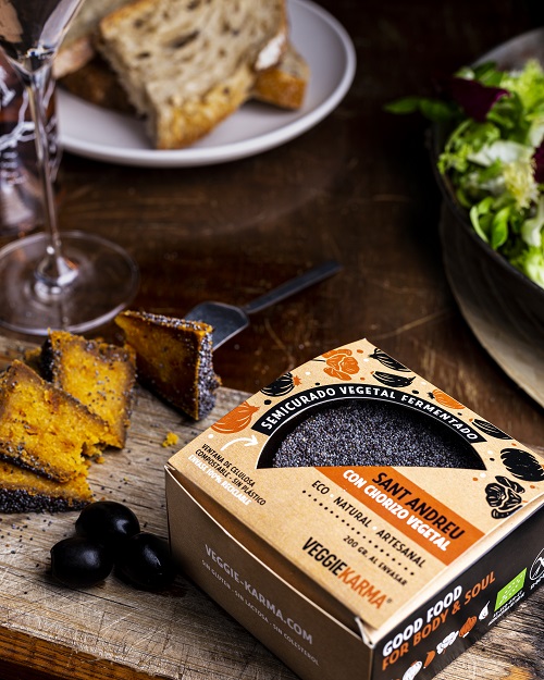 Queso semicurado Vegano de Chorizo vegetal, Sant Andreu, Veggie Karma
