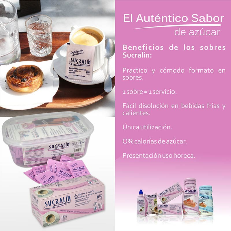 Sucralin es un edulcorante natural procedente de la caña de azúcar, por tanto, es beneficioso para el organismo. Y es que además de ser un producto universal, es decir que lo puede tomar cualquiera sin riesgos para la salud (las personas con diabetes), y las personas que se quieren cuidar, con una dieta equilibrada y saludable, han encontrado en Sucralin el complemento perfecto para seguir endulzando su vida (0% de calorías sobre el azúcar). Además de ser muy sensible a las personas con intolerancias como al gluten y la lactosa (Sucralin no tiene ninguna de las dos).