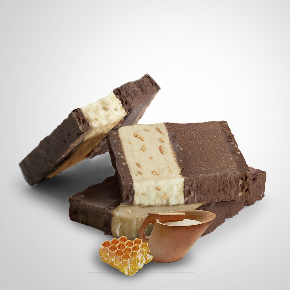 Ingredientes: Coberturas chocolate (azúcar, manteca de cacao, LECHE entera en polvo, pasta de cacao, LACTOSA, LECHE desnatada en polvo, emulgente: lecitina de SOJA, aroma natural de vainilla), praliné de ALMENDRA (ALMENDRA y azúcar), chocolate con LECHE con miel (21%)(azúcar, manteca de cacao, LECHE entera en polvo, pasta de cacao, miel en polvo 1,5% (miel (60%), maltodextrina), emulgente: lecitina de SOJA, aroma: aroma natural de vainilla), crocanti de ALMENDRA (ALMENDRA, azúcar), NATA, LECHE de oveja latxa (6%), NUECES (4%), manteca de cacao, MANTEQUILLA, aguardiente, azúcar invertido (azúcar, agua).